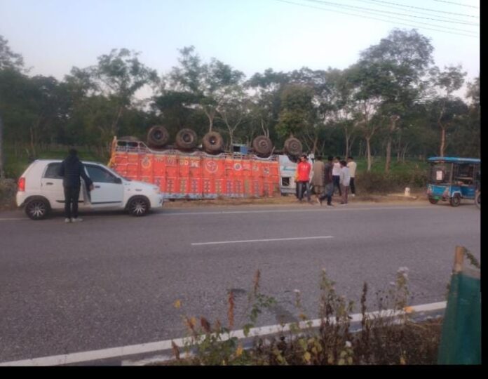 विश्वनाथ के मुखरगढ़ में कल रात हुई एक भयंकर दुर्घटना। रंगिया से बंदर द्वार के तरफ आता हुआ एक ट्रक रास्ता पर पलट गया। दुर्घटना में ग्रस्त होने वाला गाड़ी का नंबर है AS01TC 6486 सूत्र के मुताबिक उसे वहां का गति सही था, लेकिन गाना कोहरा के कारण पलटी मारी वह ट्रक। उसे ट्रक दुर्घटना के दौरान बहुत ही बुरी तरह से घायल हुआ ट्रक ड्राइवर। इस घटना के दौरान पूछताछ करने पर यह बात सामने आया है किहु इस ट्रक ड्राइवर का हालत गंभीर होने के कारण एक अस्पताल से दूसरे अस्पताल मेंरेफाईर किया गया। और उसे ट्रक के मालिक का एक रिश्तेदार का कहना है कि__ इस ट्रक में 4000 के समान माल लोड था और यह घटना कोहरे के कारण ही हुआ है।