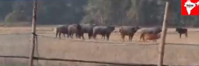 Fear of wild buffaloes has once again gripped Kaliabor. According to sources in Kaliabor’s Tiger Chowk, Baltik Chainchua, and Shantipur, approximately 9 wild buffaloes are causing distress. The buffaloes have begun attacking cattle. Meanwhile, forest officials are present on the scene and are making efforts to drive the buffaloes away. Furthermore, according to local residents, there were a total of 11 buffaloes.
