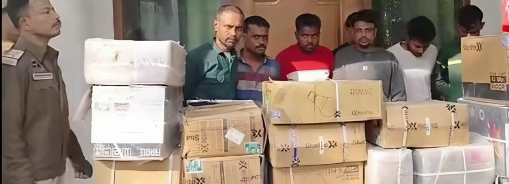 Robbers robbed a warehouse in Madhupur, Vishwanath. Police achieved success on the first day of the new year, arresting six individuals. This robbery occurred in Lakhda. According to sources, a large quantity of electronic materials was stolen from a warehouse by breaking into it. It has also emerged that the robbers entered with a group. The electronics warehouse contained various items of value, and the robbers stole the goods. The robbers were identified as Maksidul Haque, Rafiqul Ali, Aftar Hussain, Ajit Das, Majibur Rahmat, and Rajendra Nayak. These individuals were involved in the crime. According to the constable, the robbery occurred on December 29th. While reporting the incident, the constable immediately investigated the matter and apprehended the robbers. A truck and a small vehicle were found near the location of the robbery. Subsequently, while checking the truck, they also found electronic items worth several lakhs of rupees. These items were found in the vehicles. And the robbers themselves admitted that it was they who had committed the theft in Lakhda and they commit similar thefts in many other places.